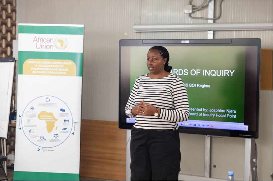 At AUSSOM, Njeru is a Senior Civilian Casualty Tracking, Analysis and Response Cell (CCTARC) and Board of Inquiry (BOI) Officer. Her role sits at the heart of civilian harm mitigation, establishing facts, ensuring accountability, and responding to incidents that affect local communities.